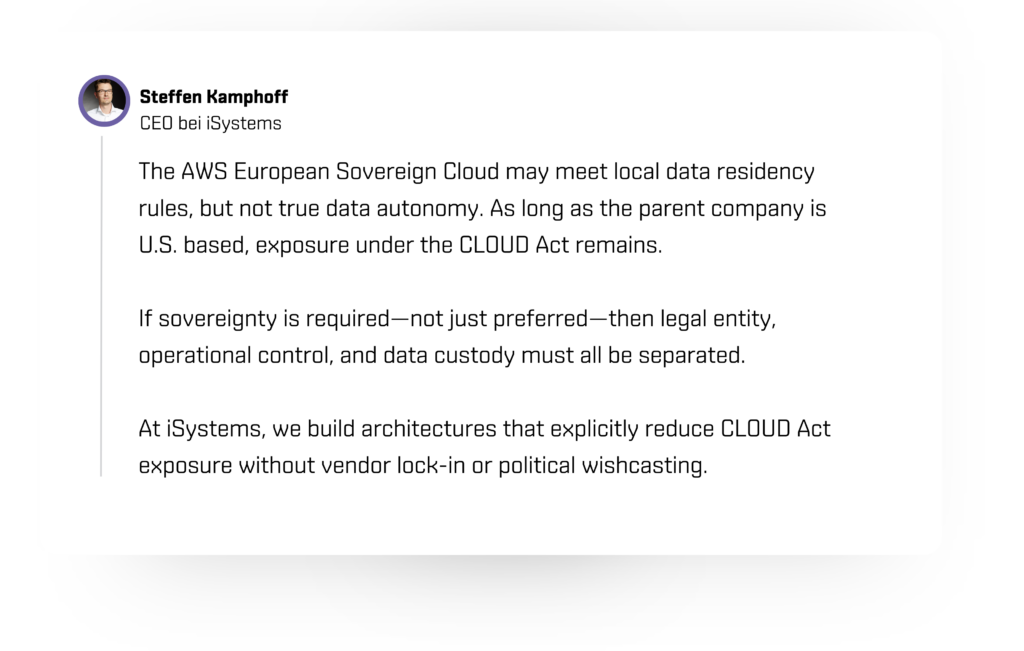 _The Sovereignty Illusion: Why AWS’s European Cloud Cannot Escape US Jurisdiction https://eliatra.com/blog/the-sovereignty-illusion-why-awss-european-cloud-cannot-escape-us/